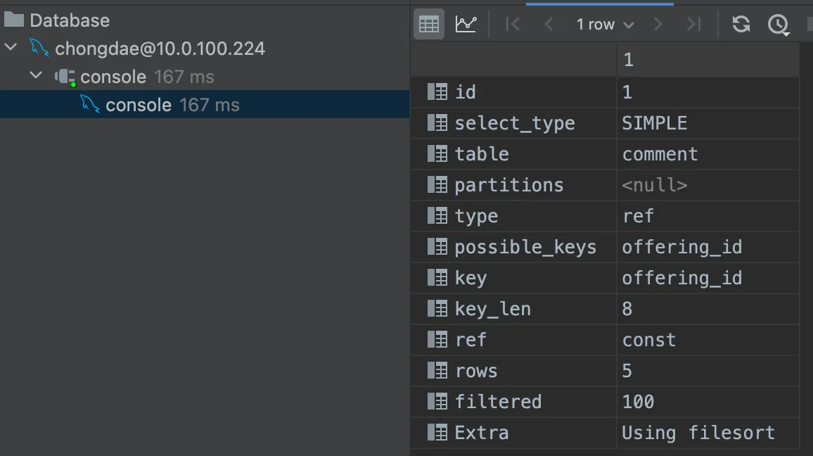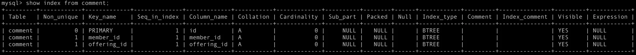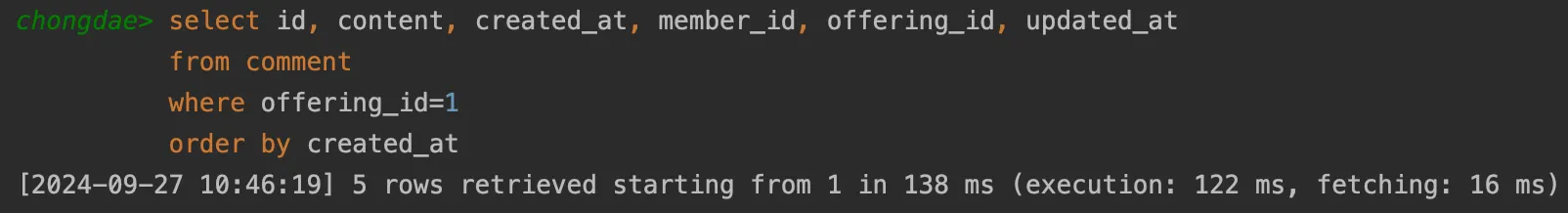 → 각 Offering 당 comment는 1천 건 미만으로 다수 생성될 것으로 예상됨, 인덱스를 설정하는 것보다 현행대로 filesort를 사용하는 것이 좋다고 판단
