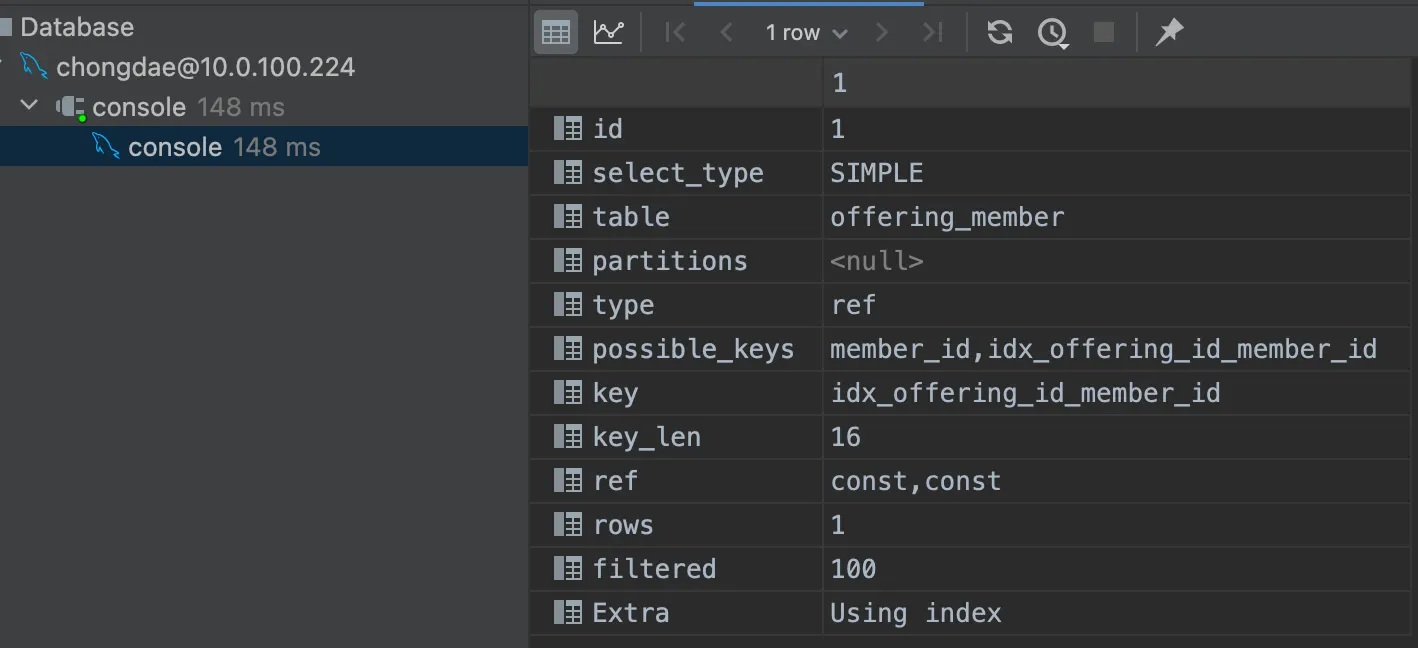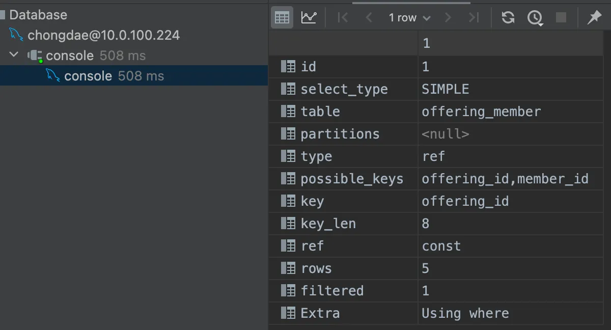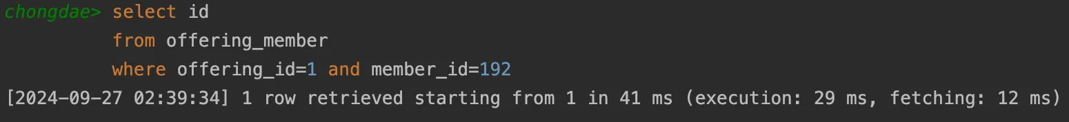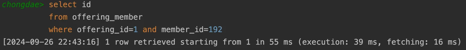 → 큰 차이가 나지 않음, idx_offering_id_member_id는 불필요하다고 생각, INSERT 하는 경우도 생각해야 했기 때문