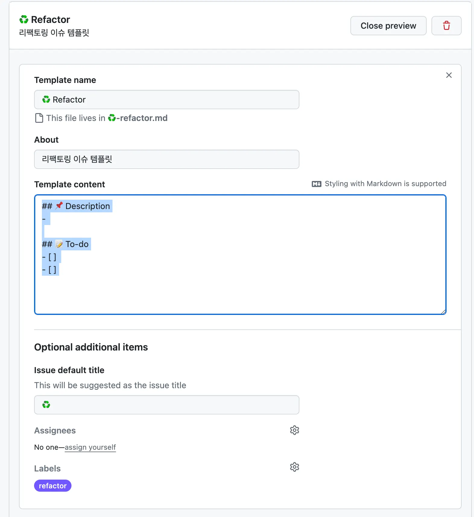 이슈 템플릿을 활용하여 Issue를 등록한다.