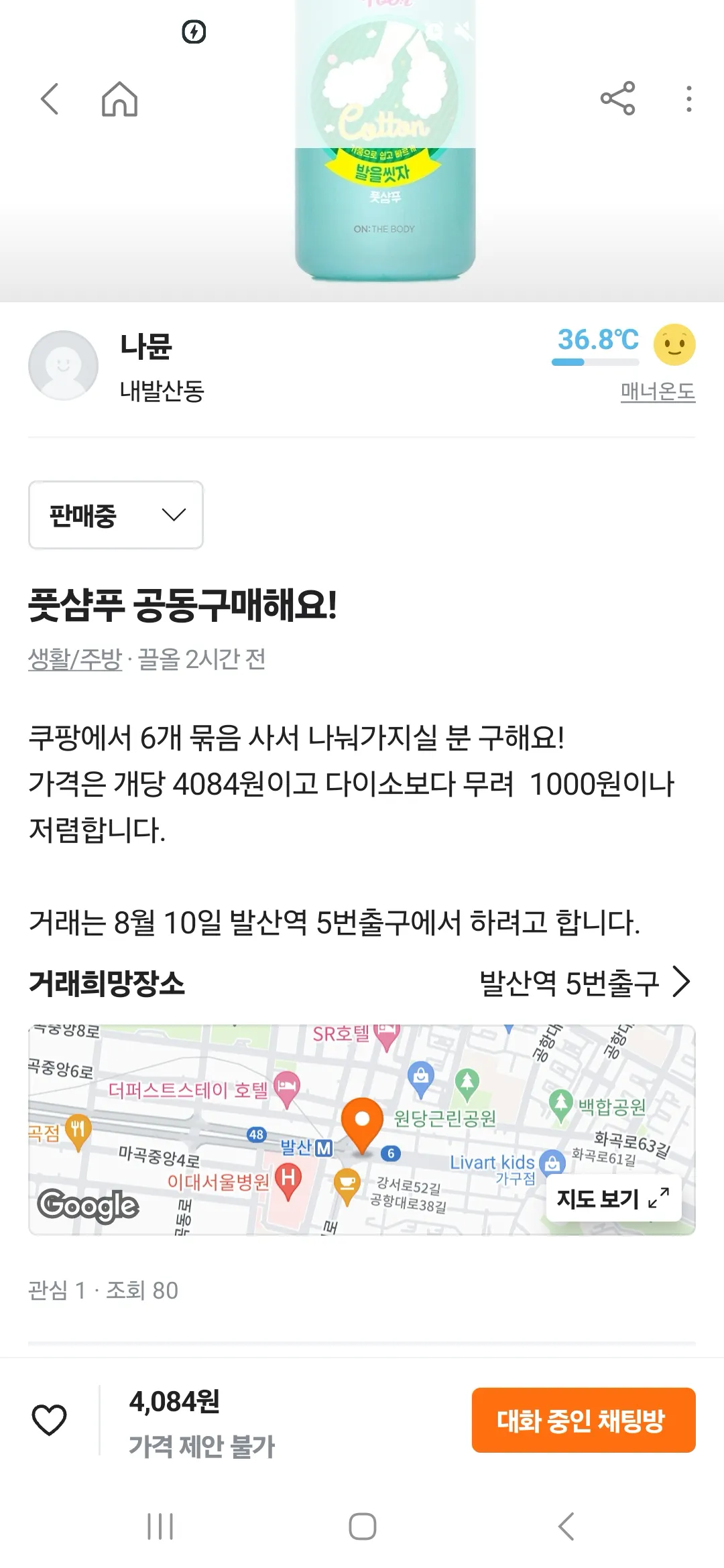 동내 생활 게시판, 나의 거래(중고거래) 두 군데 공구글을 올림.