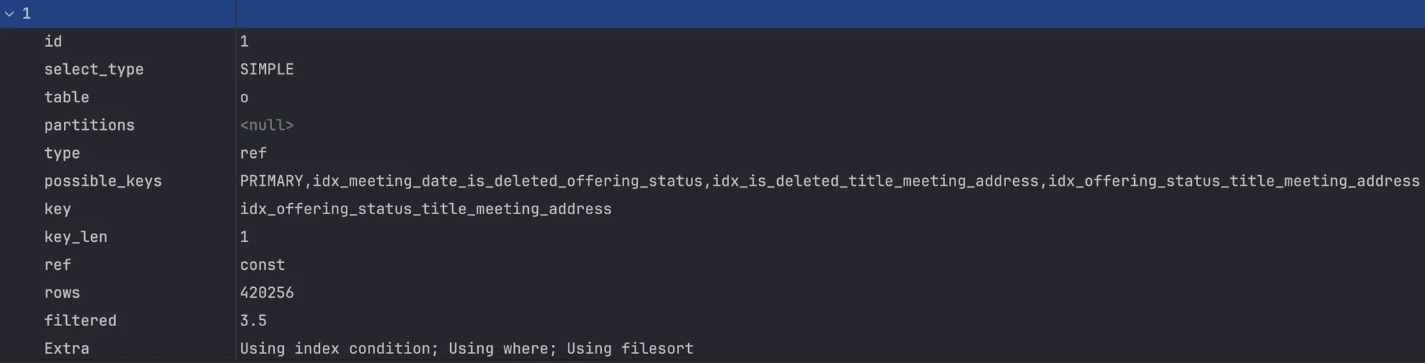 카디널리티 높은 필드의 순서로 탐색한 후 작업 범위를 결정하지 않는 필드를 탐색한다. 또한 다른 인덱스와 공존할 경우 MySQL 옵티마이저가 선택하는 인덱스이다.