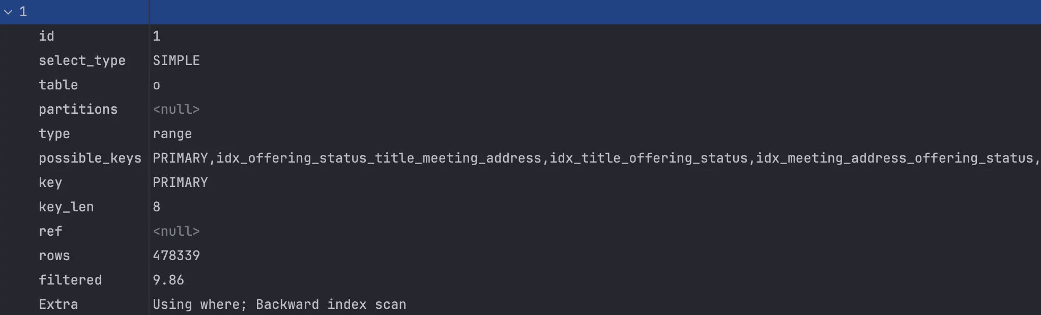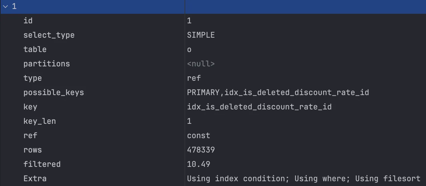 이유: id로 필터링과 정렬을 진행하므로 PK만으로 성능 개선 충분