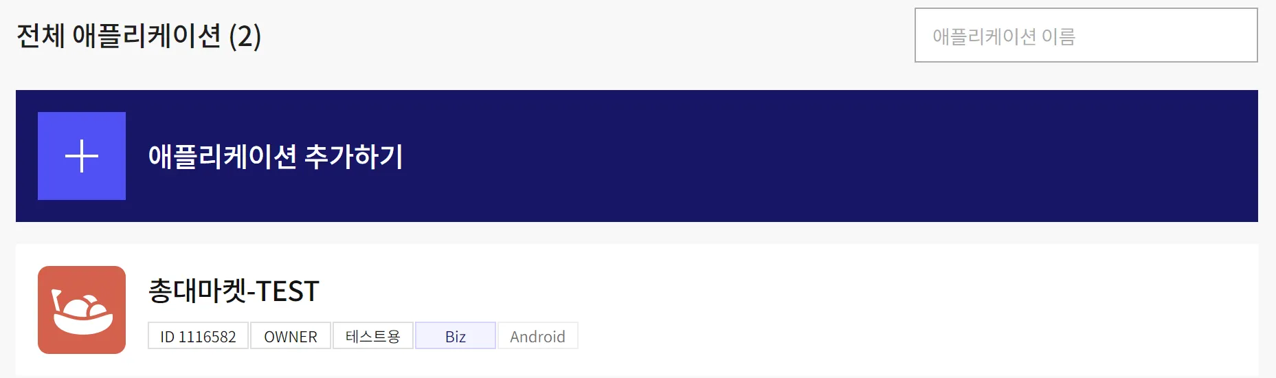 내 어플리케이션 탭에 들어가 우리 앱의 정보를 등록해 준다.