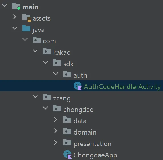참고로 여기서 AuthCodeHandlerActivity 는 개발자가 생성하는 것이 아니라 카카오 SDK에 이미 포함 되어있는 클래스이니, 괜히 com.kakao.sdk.auth 경로에 들어가 AuthCodeHandlerActivity 를 생성하는 불상사를 일으키지 말자;; (내 얘기임 ㅋㅋㅋㅋ)