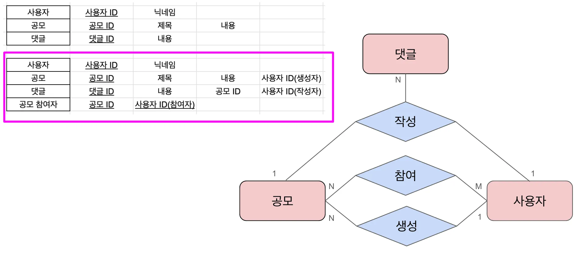 기존에는 공모와 댓글방의 생명주기가 달라 따로 관리하는 방안을 생각해보았지만, 한 테이블로 관리하여 동일한 것으로 간주한다면 생각을 더 해봐야 할 것 같음