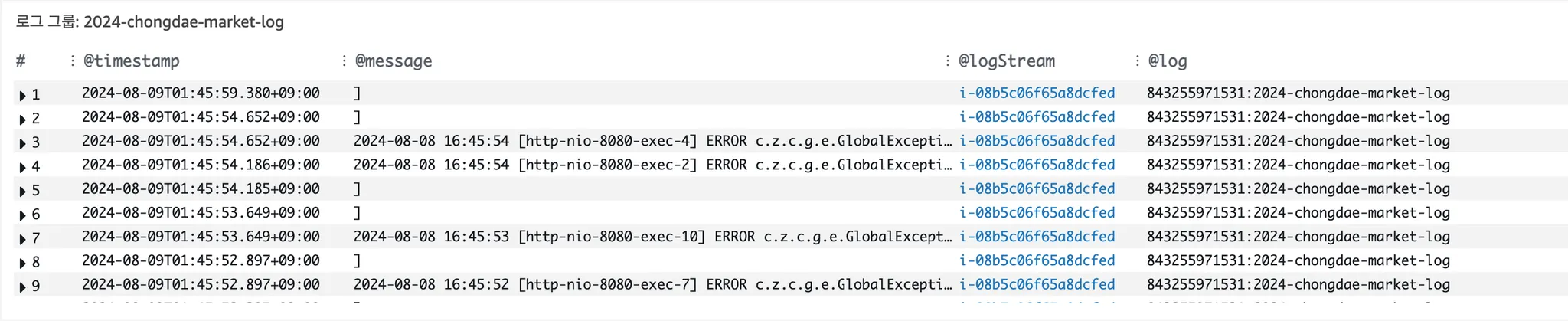 [정책] 로깅 레벨 별로 수집 대상 다르게 로그를 남겼고, 운영 환경에선 INFO, WARN, ERROR 로그 남김